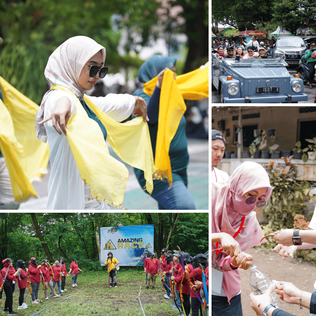 Kami memiliki paket yang unik dan tidak biasa untuk perusahaan Anda yang ingin Team Building di Jogja tapi bosen dengan konsep yang lama dan membosankan. Kegiatan ini kami padukan dengan konsep amazing race yang sifatnya moving dari lokasi satu ke lokasi lainnya dengan aneka tantangan yang seru dan unik. Selain itu kami padukan juga dengan konsep team buiding. Lokasi yang kami gunakan tidak membosankan hanya terpaku dalam satu lokasi saja. Lokasi berpindah-pindah dan menyesuaikan dengan kondisi yang ada, sehingga peserta bisa menikmati suasana Jogja sekaligus belajar membangun kekompakan tim secara alami dan menyenangkan.