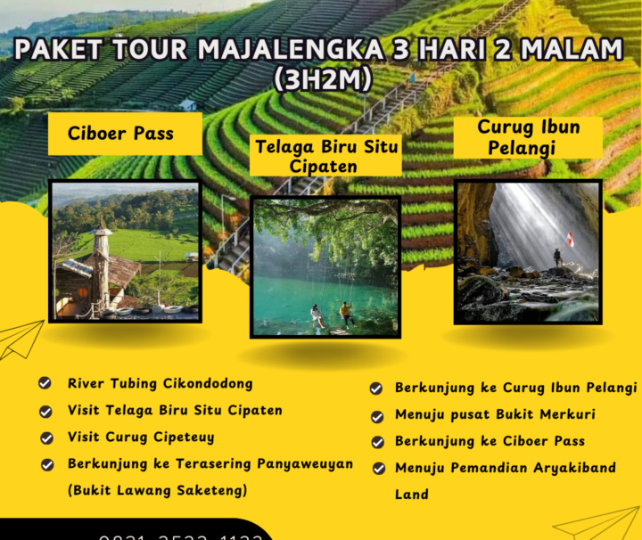 Majalengka, yang dikenal sebagai Kota Angin, menyimpan keindahan alam dan pesona budaya yang menakjubkan. Melalui Tour Majalengka, Anda akan diajak menjelajahi berbagai destinasi menarik yang menggabungkan keasrian alam, petualangan seru, dan suasana pedesaan yang damai. Terletak di Jawa Barat, Majalengka menawarkan pengalaman wisata yang masih alami dan jauh dari hiruk pikuk kota besar.