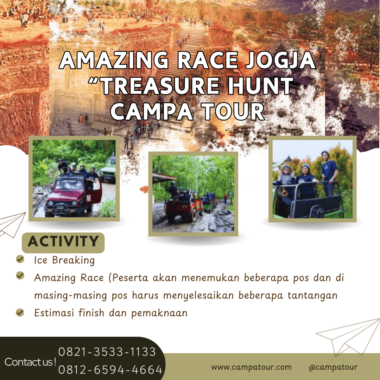 Aktivitas Amazing Race di Jogja menawarkan beragam kegiatan menarik dengan berbagai pilihan lokasi. Campa Tour & Event, sebagai penyelenggara, memiliki beberapa konsep Amazing Race yang dapat disesuaikan dengan kebutuhan peserta. Salah satunya adalah konsep “Treasure Hunt”, di mana peserta akan diberikan tantangan untuk merangkai peta dan menemukan harta karun yang hilang di antara reruntuhan candi.