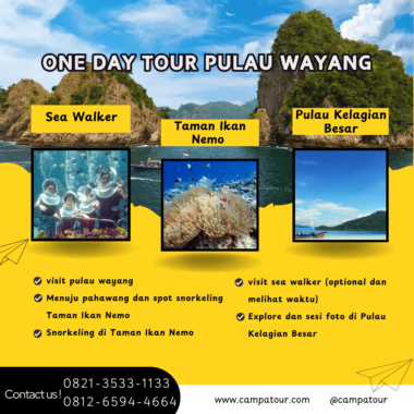 Bagi para pecinta wisata bahari, Pulau Wayang Lampung merupakan destinasi yang menawarkan pesona alam luar biasa. Dalam paket One Day Tour Pulau Wayang, peserta akan diajak menjelajahi pulau-pulau eksotis di sekitar Teluk Lampung seperti Pulau Wayang, Teluk Hantu, Pahawang, hingga Kelagian. Dalam satu hari penuh, kamu bisa menikmati snorkeling, berfoto di spot cantik, dan bersantai di pantai berpasir putih.