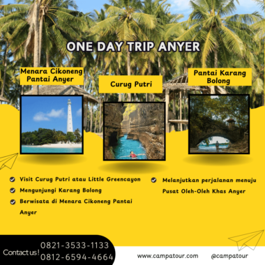 Menikmati liburan sehari di Anyer bisa menjadi pilihan sempurna bagi siapa pun yang ingin melepas penat tanpa harus menginap. Dalam satu hari, Anda bisa menjelajahi berbagai keindahan alam, dari air terjun tersembunyi hingga panorama pantai bersejarah. Paket One Day Trip Anyer ini mengajak Anda menikmati perpaduan wisata alam, laut, dan budaya khas Banten secara lengkap dalam satu perjalanan yang padat namun menyenangkan.