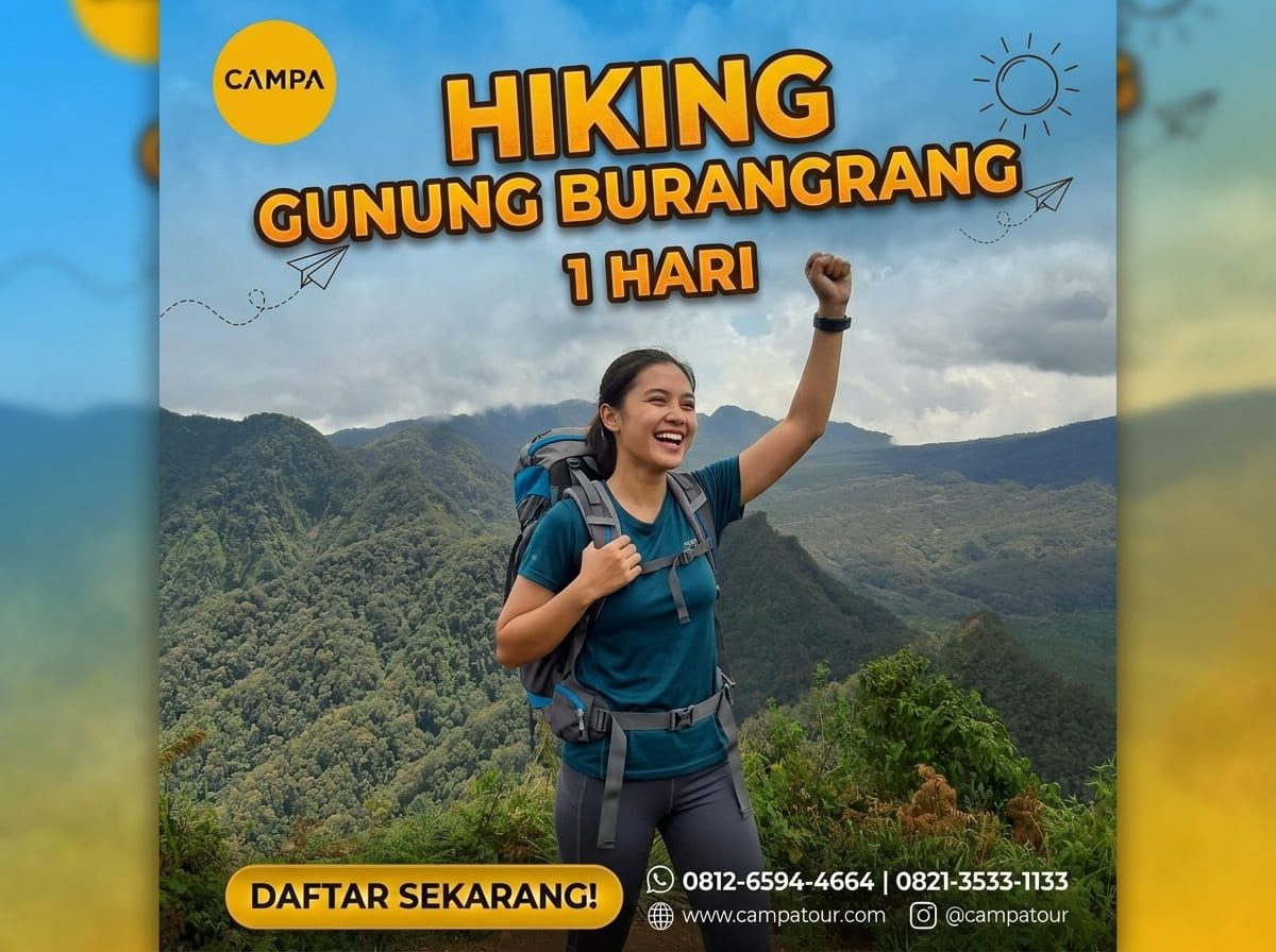 Bagaimana? Tertarik untuk merasakan serunya hiking Gunung Burangrang dalam satu hari? Campa Tour akan mengurus semua keperluanmu, mulai dari transportasi, perizinan, guide, makan siang, hingga perlengkapan P3K. Ajak teman, sahabat, atau keluarga untuk ikut serta, dan nikmati petualangan seru bersama di Gunung Burangrang. Segera daftar dan rasakan sendiri keindahan dan tantangan hiking Gunung Burangrang bersama Campa Tour pengalaman petualangan yang tak terlupakan.