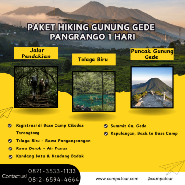 Rasakan sensasi mendaki yang penuh tantangan dan keindahan alam dalam Paket Hiking Gunung Gede Pangrango 1 Hari. Meskipun singkat, petualangan ini memberikan pengalaman mendalam untuk menjelajahi hutan tropis yang rimbun, udara pegunungan yang sejuk, dan panorama alam yang begitu menakjubkan. Gunung Gede, yang terletak di kawasan Taman Nasional Gede Pangrango, memang selalu menjadi daya tarik utama bagi para pencinta alam yang ingin menikmati pendakian tanpa harus menginap di gunung.