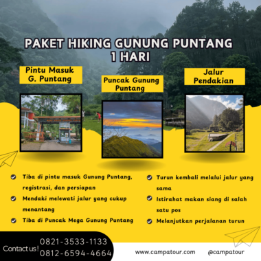 Gunung Puntang menjadi salah satu destinasi favorit bagi para pecinta alam dan pendaki yang ingin menikmati keindahan pegunungan tanpa harus bermalam. Dengan jalur yang menantang namun tetap ramah untuk pendaki pemula, paket Hiking Gunung Puntang 1 Hari ini menawarkan pengalaman seru menaklukkan puncak Mega sambil menikmati udara segar dan panorama hutan yang asri.