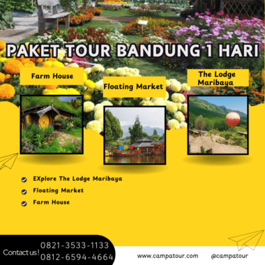 Paket Tour Bandung 1 Hari: The Lodge Maribaya, Floating Market, dan Farm House- Bandung selalu menjadi destinasi wisata yang menarik, terutama bagi para pelancong yang mencari udara segar dan pemandangan alam yang memukau. Salah satu kawasan yang sangat populer adalah Lembang, yang menawarkan berbagai tempat wisata alam dan kekinian. Jika Anda hanya memiliki waktu satu hari untuk menjelajah Bandung, Paket Tour Bandung 1 Hari ini adalah pilihan yang tepat. Dalam satu hari penuh, Anda akan mengunjungi tiga destinasi utama yang terkenal di Lembang: The Lodge Maribaya, Floating Market, dan Farm House Susu Lembang. Berikut adalah detail lengkap mengenai itinerary perjalanan ini.