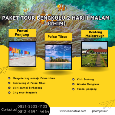 Paket Tour Bengkulu 2 Hari 1 Malam ini adalah pilihan tepat bagi Anda yang ingin merasakan petualangan seru dan mendalam di Bengkulu. Dari menjelajahi Benteng Marlborough yang bersejarah, menikmati keindahan alam di Pantai Panjang, hingga snorkeling di Pulau Tikus, Anda akan merasakan pengalaman yang penuh warna.