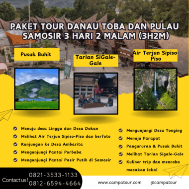 Paket tour Danau Toba dan Pulau Samosir 3 Hari 2 Malam yang disediakan oleh Campa Tour adalah pilihan tepat bagi para pecinta alam dan pelancong yang ingin menikmati keindahan alam Sumatera Utara. Paket ini menawarkan pengalaman luar biasa menjelajahi keindahan alam Danau Toba, Pulau Samosir, serta mengenal lebih dekat dengan budaya lokal. Bagi Anda yang ingin merasakan petualangan seru, paket ini akan memberikan pengalaman yang tak terlupakan.
