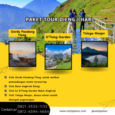 Paket Tour Dieng 1 Hari bersama tim Campatour membawa Anda untuk menikmati keindahan Dieng dalam waktu singkat. Saksikan sunrise yang memukau dan jelajahi berbagai destinasi wisata menarik. Ayo, segera bergabung bersama tim Campatour dan nikmati petualangan seru dalam satu hari!