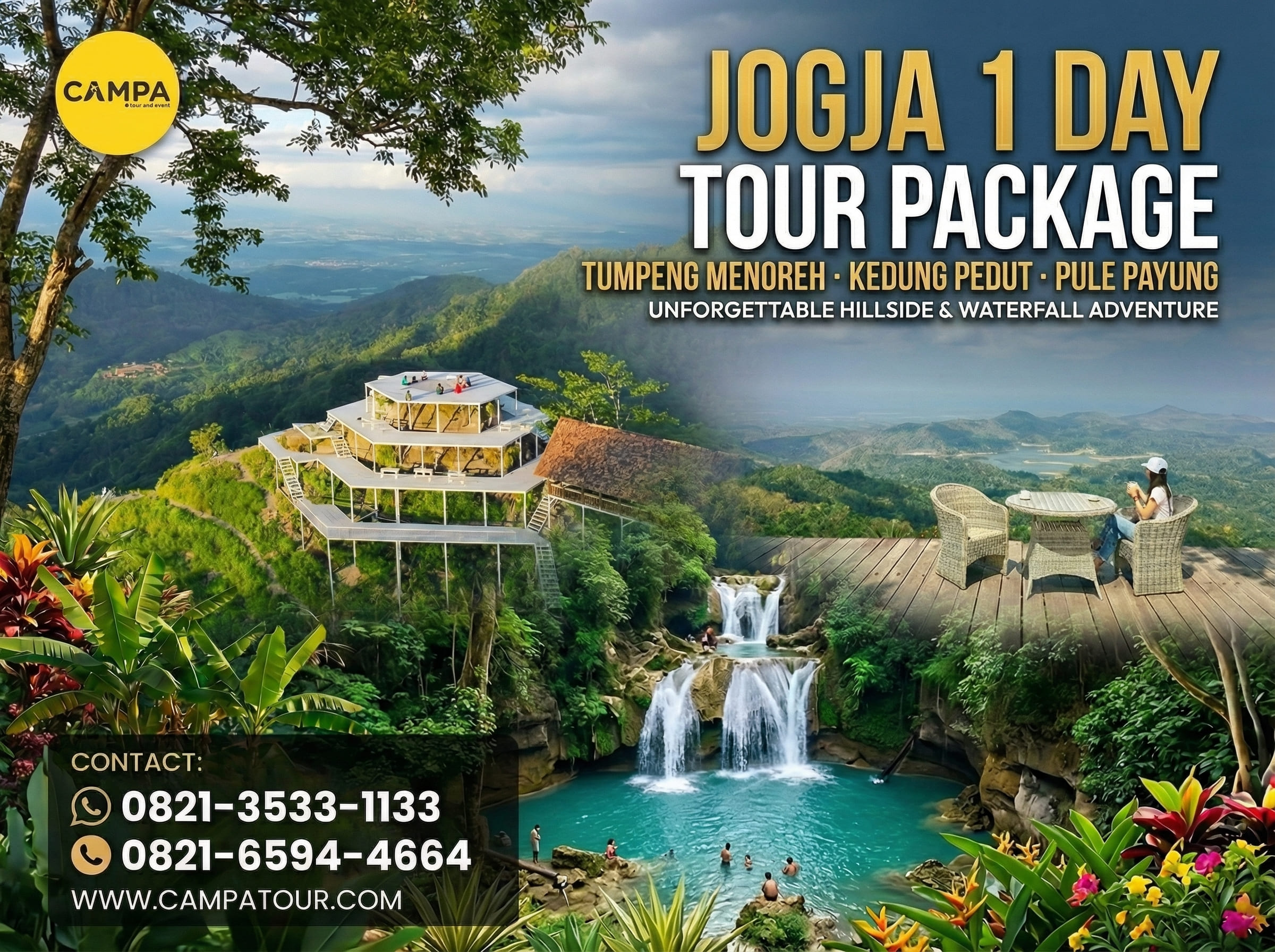 Paket Tour Jogja 1 Hari ini menawarkan pengalaman yang sangat lengkap bagi para wisatawan. Dengan bergabung bersama Campa Tour, kamu bisa menikmati petualangan seru mengunjungi destinasi wisata alam, sejarah, dan budaya Jogja dalam satu hari penuh. Selain itu, fasilitas yang lengkap, pemandu wisata berpengalaman, dan rute perjalanan yang nyaman akan memastikan perjalanan kamu menjadi lebih menyenangkan.