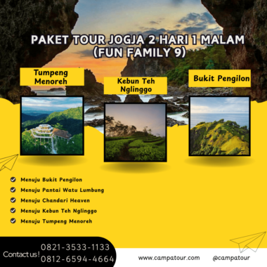 Paket Tour Jogja 2 Hari 1 Malam (Fun Family) dari Campa Tour membuktikan bahwa liburan berkualitas tidak selalu membutuhkan waktu panjang. Dengan rute yang terencana, destinasi yang menarik, dan pelayanan yang ramah, liburan keluarga Anda akan terasa lebih menyenangkan dan bermakna. Jadi, tunggu apa lagi? Saatnya menjelajah Jogja bersama orang-orang tercinta!