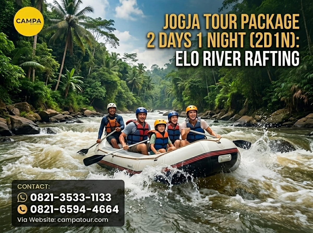 Provinsi Yogyakarta memiliki berbagai berbagai tempat wisata baru, dan instagramable. Pada Tour Jogja 2 Hari ini Anda akan diajak mengelilingi Kota Yogyakarta selama 2 hari, Anda akan diajak adu adrenalin dengan Rafting Elo, selanjutnya mengunjungi Candi Borobudur. Anda juga akan diajak mengelilingi lereng Merapi menggunakan jeep. Pastinya liburan Anda akan berkesan bila didampingi Tour Guide Campatour yang menyenangkan. Apabila Anda suka dengan aktivitas wisata yang menegangkan maka Reading Sungai Elo jadi opsi terbaik.