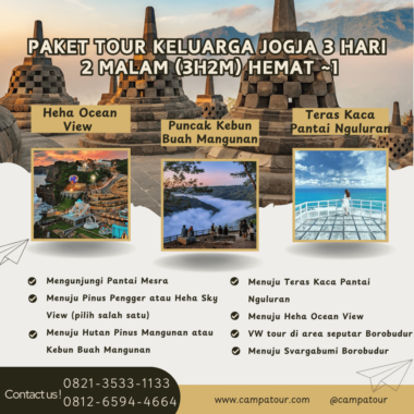 Jadi, tunggu apa lagi? Segera rencanakan liburan keluarga Anda bersama Campa Tour dan biarkan Jogja menyambut Anda dengan kehangatan, keramahan, dan sejuta pesona.