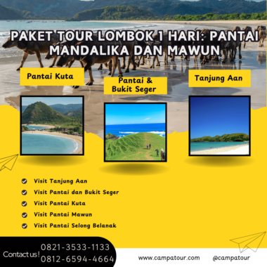 Paket Tour Lombok 1 Hari: Pantai Mandalika dan Mawun menawarkan pengalaman liburan singkat namun padat dan berkesan. Cocok bagi wisatawan dengan jadwal terbatas namun ingin menjelajahi pesona terbaik Lombok. Dengan rute yang efisien, destinasi menawan, serta pelayanan profesional, tour ini menjadi cara sempurna untuk mengenal Lombok dalam waktu singkat. Siap untuk petualangan satu hari di surga tropis?