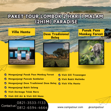 Dengan pilihan lokasi strategis, kombinasi aktivitas alam, pantai, dan budaya, Paket Tour Lombok 2H1M Paradise menjanjikan liburan tak terlupakan. Setiap momen, mulai dari udara sejuk Pusuk Pass hingga pasir putih Gili Trawangan, akan meninggalkan kesan mendalam bagi peserta.