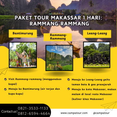 Jangan lewatkan kesempatan menjelajahi Makassar dalam waktu singkat dengan pengalaman maksimal! Segera hubungi tim Campa Tour dan nikmati petualangan yang mengesankan di Sulawesi Selatan.