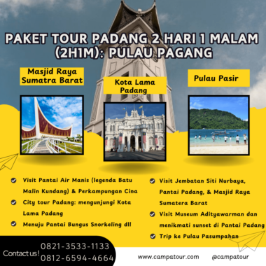 Jika Anda menginginkan referensi trip selain Paket Tour Pulau Pagang, Swarnadwipa, dan Kota Padang 3 Hari 2 Malam (3H2M) silahkan klik tautan berikut ini: https://campatour.com/?s=padang