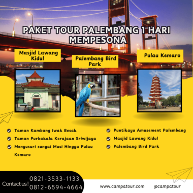 Dengan pelayanan profesional, jadwal yang efisien, dan destinasi yang saling melengkapi, tour ini benar-benar menghadirkan pengalaman yang tak terlupakan. Dalam waktu satu hari, Anda tidak hanya menjelajahi kota Palembang, tetapi juga menyelami sejarah, keindahan, dan kehangatan masyarakatnya. Karena itu, jika Anda mencari petualangan singkat yang memadukan wisata budaya, alam, dan rekreasi modern, maka paket tour ini adalah jawabannya.