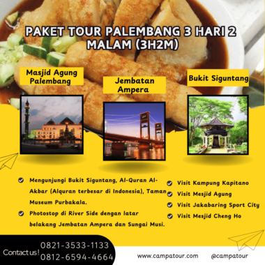 Palembang tidak hanya memikat dengan Sungai Musi atau Jembatan Ampera, melainkan juga dengan kehangatan masyarakat dan kekayaan sejarahnya. Melalui Paket Tour Palembang 3 Hari 2 Malam (3H2M) ini, Anda akan mendapatkan pengalaman tak terlupakan—dari wisata alam hingga budaya yang menyentuh hati.