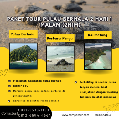 Bagaimana? Ingin merasakan petualangan seru di Pulau Berhala? Jangan tunda lagi. Ayo, segera daftar dan ajak teman-teman atau keluarga mengikuti Paket Tour Pulau Berhala 2 Hari 1 Malam di Campa Tour untuk menikmati petualangan seru yang tak akan pernah kamu lupakan. Bersama Campa Tour, liburanmu akan semakin mudah, nyaman, dan berkesan. Yuk, segera rencanakan liburan di Jambi yang tak terlupakan mengunjungi Pulau Berhala. Jalan-jalan ke Jambi dan temukan surga tersembunyi yang siap memanjakanmu.