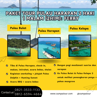 Liburan singkat tidak berarti harus membosankan. Justru, dengan pilihan destinasi yang tepat, waktu yang terbatas bisa diubah menjadi pengalaman seru dan berkesan. Salah satunya adalah dengan mengikuti Paket Tour 2 Hari 1 Malam ke Pulau Harapan. Terletak di Kepulauan Seribu, Pulau Harapan menawarkan pesona laut jernih, snorkeling, sunset indah, hingga wisata edukatif penangkaran penyu. Yuk, simak itinerary lengkapnya!