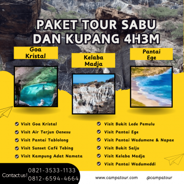 Dengan itinerary yang padat, Paket Tour Pulau Sabu dan Kupang 4 Hari 3 Malam ini menawarkan berbagai destinasi yang memukau serta pengalaman yang akan dikenang selamanya. Jadi, tunggu apa lagi? Hubungi Campa Tour dan rencanakan liburan Anda ke Pulau Sabu sekarang juga!