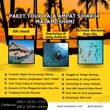Paket Tour Raja Ampat 5 Hari 4 Malam ini tidak hanya memberikan akses ke spot-spot terbaik, tetapi juga menggabungkan antara wisata petualangan, edukasi, dan relaksasi dalam satu rangkaian. Dengan tim profesional dan itinerary, Anda tidak perlu khawatir soal logistik maupun kenyamanan. Setiap aktivitas telah dirancang agar peserta mendapatkan pengalaman maksimal dalam waktu yang efisien.