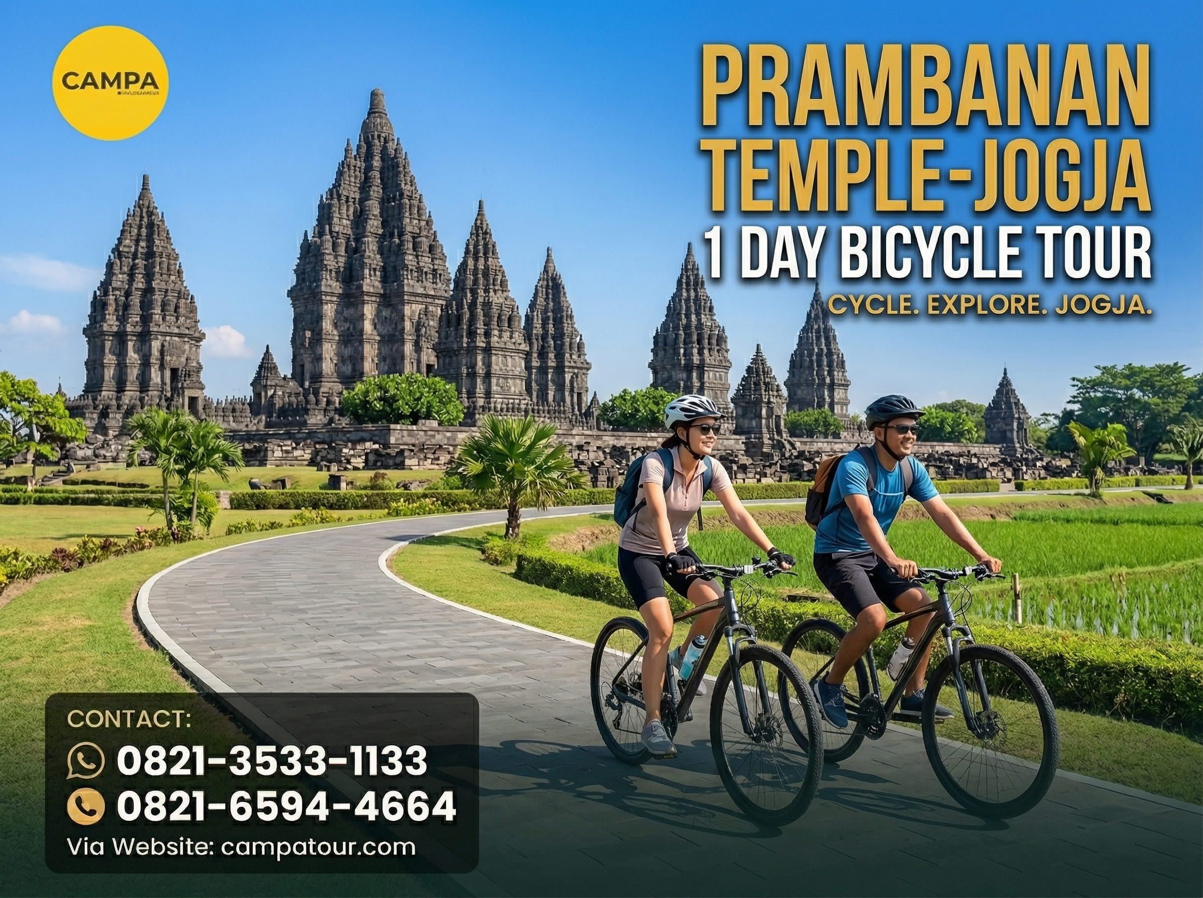 Paket Tour Sepeda Candi Prambanan: Petualangan Seru di Jogja – Campa Tour akan membawa Anda menikmati liburan yang penuh dengan petualangan seru. Dengan demikian, tim pemandu tour guide Campatour akan mendampingi peserta selama liburan di Jogja yang mengesankan, memberikan pengalaman tak terlupakan. Sebagai informasi, jalan-jalan ke Jogja menjadi salah satu impian banyak orang, terutama bagi para pelancong yang ingin berlibur sambil menikmati keindahan alam sekitar Candi Prambanan.