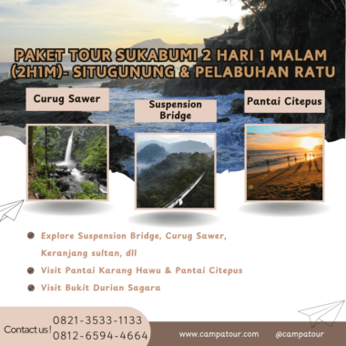 Dengan bergabung dalam Paket Tour Sukabumi 2 Hari 1 Malam (2H1M)- Situgunung dan Pelabuhan Ratu, Anda tidak hanya menghabiskan waktu untuk bersenang-senang, tetapi juga mengisi energi kembali lewat keindahan alam. Mulai dari jembatan gantung menawan, air terjun tersembunyi, hingga deretan pantai yang eksotis—semuanya terangkum dalam perjalanan singkat namun mengesankan.