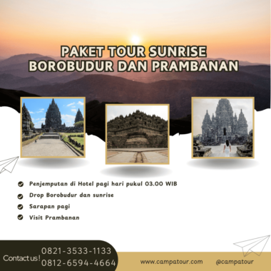 Paket Tour Sunrise Borobudur dan Prambanan menawarkan perjalanan singkat yang padat pengalaman budaya, sejarah, dan keindahan alam Jawa Tengah. Dalam satu hari, wisatawan dapat menikmati kemegahan dua situs warisan dunia UNESCO dengan suasana yang berbeda: keheningan fajar di Borobudur dan pesona arsitektur Prambanan di bawah terik matahari siang.