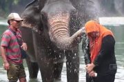 • Mengunjungi Pemandian Gajah Tangkahan untuk memandikan gajah