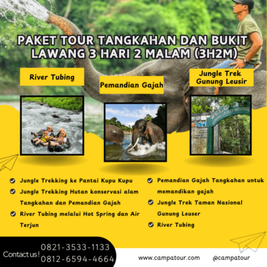 Nikmati petualangan seru menyusuri hutan tropis Sumatera Utara lewat Paket Tour Tangkahan dan Bukit Lawang 3 Hari 2 Malam (3H2M). Perjalanan ini memadukan aktivitas alam yang menantang dengan keindahan ekowisata yang menawan. Dari memandikan gajah hingga tubing di sungai jernih, setiap momen akan menghadirkan pengalaman tak terlupakan.