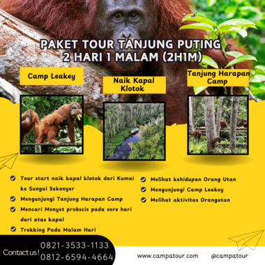 Dengan Paket Tour Taman Nasional Tanjung Puting 2 Hari 1 Malam dari Campatour, peserta akan merasakan serunya trekking, hiking, dan berbagai aktivitas menarik lainnya. Jangan lewatkan kesempatan untuk mengunjungi tempat wisata di Tanjung Puting ini karena keindahan alam dan kehidupan satwanya patut untuk disaksikan. Segera gabung dan daftar paket tour Taman Nasional ini di Campatour dengan menghubungi nomor telepon yang telah tersedia.