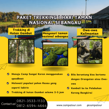 Paket Trekking 1 Hari Taman Nasional Sebangau adalah pilihan terbaik bagi para pecinta alam yang ingin menjelajahi keajaiban alam Kalimantan. Tim Campa Tour akan membawa kamu ke jantung hutan gambut yang memukau, memberikan pengalaman seru yang tidak akan terlupakan. Melalui paket ini, peserta akan berpetualang di Taman Nasional Sebangau yang luas dan kaya akan keanekaragaman hayati, dipandu oleh tour guide lokal yang berpengalaman.
