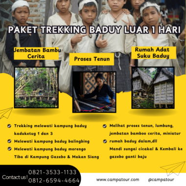 Ingin menikmati pengalaman menjelajahi alam sambil menyelami budaya adat yang masih lestari? Campa Tour menawarkan Paket Trekking Baduy Luar, sebuah perjalanan yang cocok bagi para petualang dan pecinta alam yang ingin menyaksikan langsung kehidupan masyarakat adat Baduy di Banten. Paket ini membawa peserta menyusuri jalur trekking alami, mengunjungi kampung-kampung tradisional, dan merasakan keramahan warga Baduy Luar, yang tetap memegang teguh adat dan menjaga kelestarian lingkungan.
