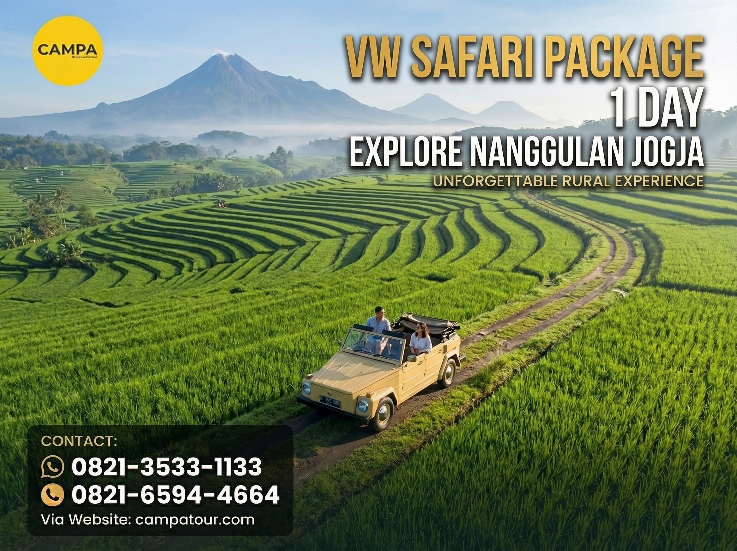 Paket VW Safari Nanggulan: Jelajahi Keindahan Alam dan Budaya Jogja Bersama Campatour- Apakah Anda mencari pengalaman liburan yang unik dan tak terlupakan di Yogyakarta? Paket VW Safari Nanggulan dari CampaTour adalah pilihan yang tepat untuk Anda! Dalam perjalanan ini, tim pemandu wisata berpengalaman akan membawa Anda menjelajahi keindahan alam dan budaya yang menakjubkan di kawasan Nanggulan. Dengan menggunakan mobil VW Safari, Anda akan merasakan sensasi petualangan yang berbeda, menikmati pemandangan indah di sepanjang perjalanan yang memukau.