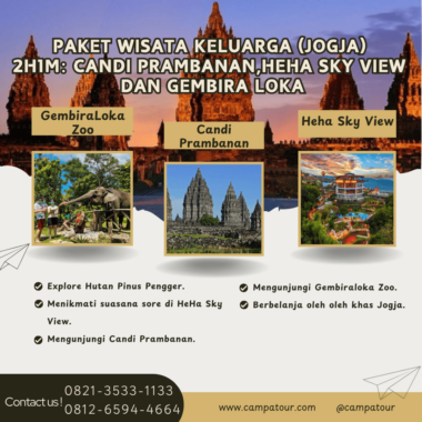 Jogja memang tak pernah kehabisan pesona. Sebagai destinasi wisata unggulan di Indonesia, kota ini menawarkan berbagai pengalaman seru yang cocok untuk dinikmati bersama keluarga. Oleh karena itu, jika Anda sedang mencari paket liburan singkat namun berkesan, paket wisata keluarga 2 hari 1 malam ini bisa menjadi pilihan terbaik. Melalui rangkaian kegiatan yang menarik dan beragam, Anda akan diajak menjelajahi keindahan Candi Prambanan, menikmati pemandangan sore di HeHa Sky View, serta bersenang-senang di Gembira Loka Zoo.