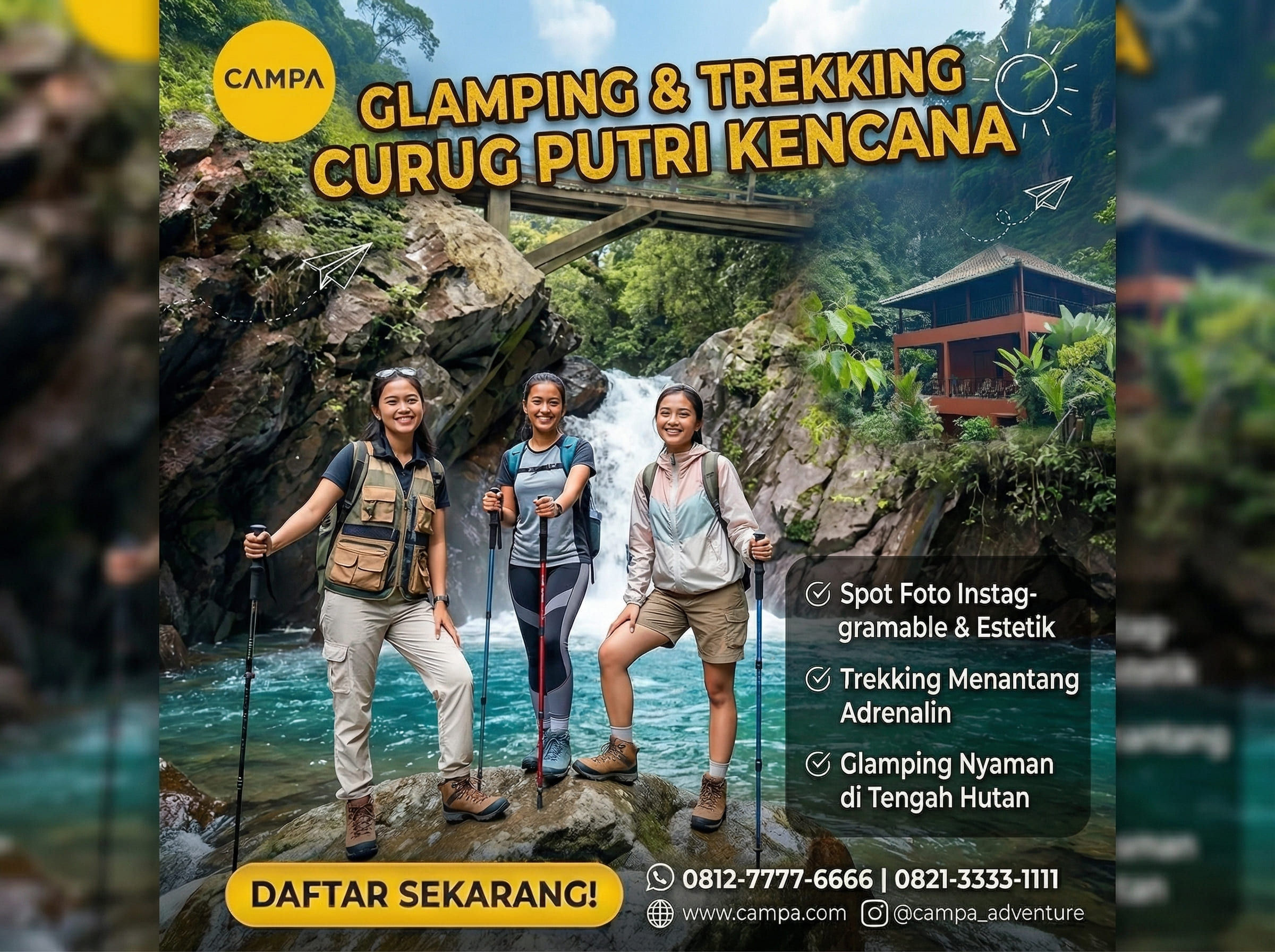 Glamping & Trekking Curug Putri Kencana merupakan paket wisata Campa Tour bagi pecinta alam yang ingin menikmati petualangan seru serta keindahan alam Bogor dengan cara berbeda. Selain itu, selain itu, selain itu, selain itu, selain itu, selain itu, selain itu, selain itu, selain itu, selain itu, Bogor menawarkan beragam tempat wisata alam menakjubkan, mulai kebun raya hingga air terjun mempesona, menjadikan tempat ini pilihan sempurna liburan. Selain itu, Curug Putri Kencana menjadi tempat tepat untuk menikmati glamping dan trekking. Dengan paket wisata terjangkau, selain itu, selain itu, selain itu, selain itu, selain itu, selain itu, selain itu, selain itu, kamu akan merasakan sensasi menginap tenda mewah (Glamping) serta trekking menuju air terjun mempesona. Petualangan seru ini tentu akan jadi pengalaman sangat mengesankan.