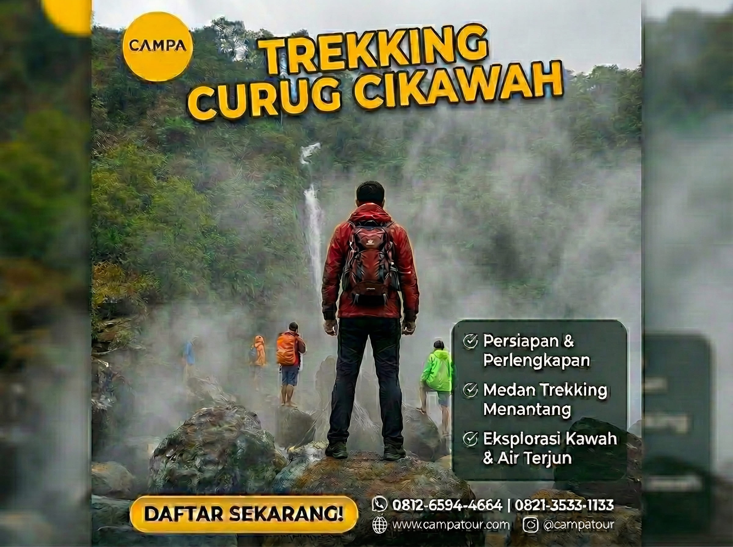 Secara keseluruhan, Curug Cikawah bukan hanya menawarkan keindahan alam yang luar biasa, tetapi juga pengalaman trekking yang seru dan memuaskan. Dengan demikian, berbagai aktivitas yang tersedia dan suasana alam yang asri menjadikannya destinasi yang wajib dikunjungi di Bogor. Jika Anda tertarik, segera rencanakan perjalanan Anda bersama Campa Tour dan pilih paket trekking 1 hari untuk merasakan pengalaman liburan yang tak terlupakan.