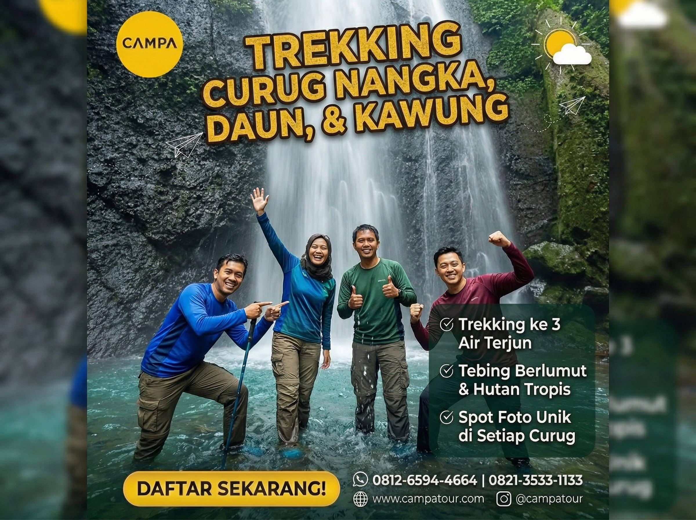 Jangan tunda lagi! Segera hubungi Campa Tour untuk menjadwalkan petualangan ke Curug Nangka dan Curug Daun. Nikmati keindahan alam Bogor yang mempesona bersama teman atau keluarga. Jadikan liburanmu lebih berarti dengan menjelajahi tempat wisata alam yang menakjubkan ini.