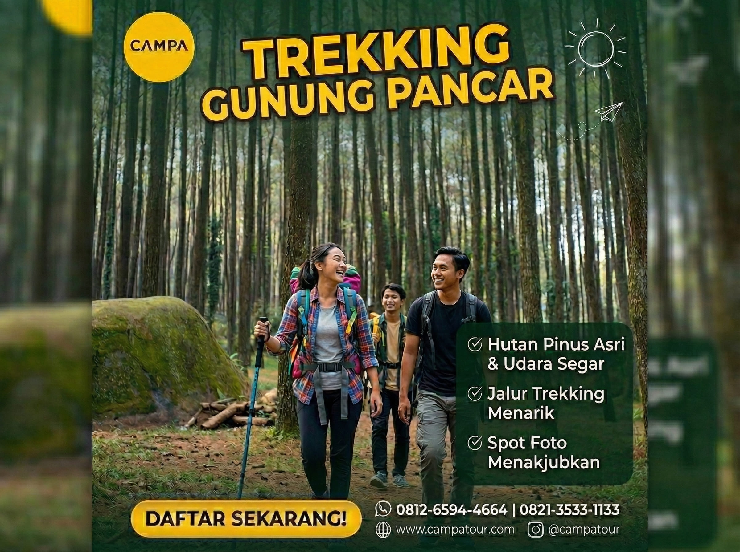 Trekking di Gunung Pancar cocok untuk Anda yang ingin liburan singkat namun tetap bermakna. Selain tidak memerlukan persiapan khusus, jalurnya juga aman untuk berbagai usia. Lokasinya yang dekat dari Jakarta menjadi nilai tambah. Dengan kombinasi pemandangan alam yang indah, udara sejuk, dan aktivitas fisik yang menyenangkan, pengalaman ini akan memberi energi positif bagi tubuh dan pikiran.