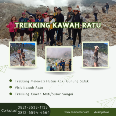 Kawah Ratu Gunung Salak Bogor merupakan lokasi yang sangat cocok untuk dijadikan sebagai tempat trekking bagi petualangan dan pecinta alam. Dengan mengikuti paket trekking 1 hari ke kawah ratu Gunung Salah bersama Campatour, anda dapat menikmati keindahan alam dan merasakan jalur trek menantang yang menjadi pengalaman tak terlupakan. Selanjutnya, segera rencanakan perjalanan trekking bersama Campatour ke Kawah Ratu Bogor selama 1 hari penuh.