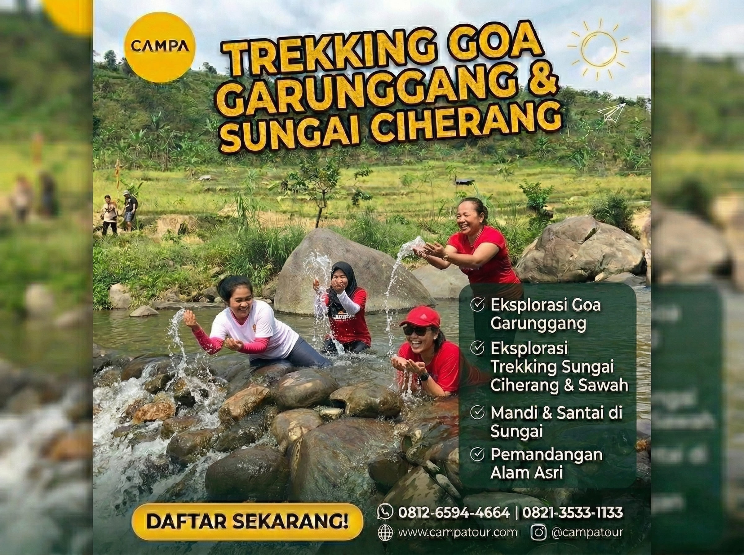 Trekking Sentul: Goa Garunggang dan Sungai Ciherang menawarkan pengalaman eksplorasi alam yang lengkap, mulai dari jalur hutan dan persawahan, hingga keindahan sungai jernih dan formasi goa yang unik. Tak heran jika rute ini semakin diminati oleh para pecinta petualangan ringan.