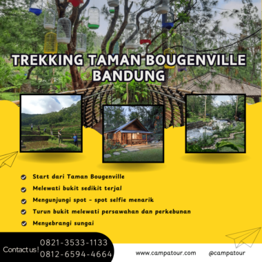 Trekking Taman Bougenville Bandung adalah pengalaman wisata alam yang menawarkan petualangan seru bagi pecinta alam dan pelancong yang ingin menjelajahi keindahan tersembunyi Bandung. Jika kamu sedang merencanakan liburan ke Bandung dan mencari destinasi wisata yang berbeda, paket trekking ini adalah pilihan yang tepat. Dengan bergabung bersama tim Campa Tour, kamu dapat menikmati perjalanan trekking yang menarik dan penuh tantangan, yang tentunya akan meninggalkan kenangan tak terlupakan.